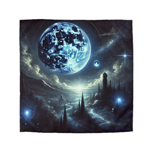 Celestial Blue Moon's Embrace Microfiber Duvet Cover